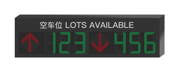 【室内双向引导屏】 功耗:最大60W,平均40W 屏体尺寸(含边框):113232265 显示屏边框:黑色铝合金边框 字符显示:支持数字箭头,可变 显示颜色:红色箭头、绿色数字 通讯