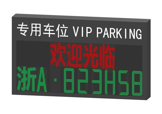 灯箱上部分镂空显示“专用车位 VIP PARKING”字样,下部分可显示动态文字信息,